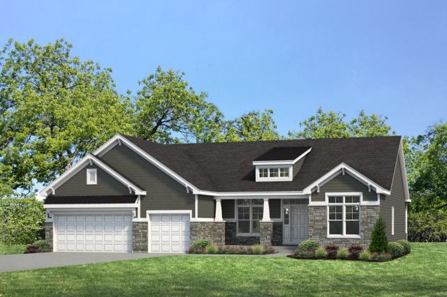 New build of the popular Southfork Ranch. Single story open concept living with 3 beds/2 bath/3 car garage and full, unfinished basement for storage or future build out. This home is loaded with goodies: wide plank engineered hardwood throughout much of the main floor, upgraded 42" kitchen cabinets with granite counters and stainless steel appliances, direct vent fireplace in the family room, stone accents on the exterior with full porch, vaulted family room and tray ceiling in the dining room, 18 x 15 concrete patio, upgraded tile and lighting package and so much more.