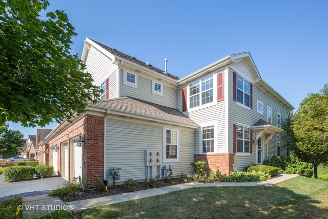 This absolutely gorgeous END UNIT townhome offers upgraded finishes throughout. Amazing views of vast open land and direct access to the Great Western Trail. Stunning open floor plan with spacious family room with cozy fireplace and vaulted ceiling, 2 story windows for natural light. Upgraded kitchen with 42" cabinets with soft close, granite counters, Breakfast bar, Stainless steel appliances, backsplash, Hardwood floors, light fixtures and more. First floor den/office and laundry room. Spacious master bedroom with full luxury master bath. Additional bedrooms are spacious as well. Partially finished additional bedroom or rec room in basement. Large deck for quiet relaxing times and entertaining. Plenty of storage! This home is truly a 10! Highly rated St. Charles Schools. Close to Randall Rd, shopping and dining.