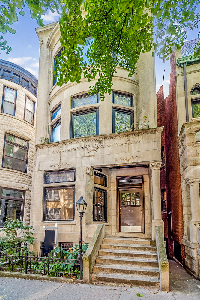 Quintessential limestone row house in highly sought after historic East Lincoln Park just one block from the lakefront on the beautiful tree lined street of Roslyn Place. This architecturally revealing 4 bedroom + den, 4 bathroom single-family home has been meticulously restored to marry the perfect blend of vintage charm and modern finishes. The home's light and bright four-level floor plan include the original intricate woodwork, wood floors, custom molding and trim, 4-original newly lined working gas fireplaces, and multiple outdoor spaces with beautiful views from the rooftop deck that boasts composite decking. The well appointed kitchen located on the 2nd floor boasts a huge granite island and a Thermador appliance package which seamlessly unfolds into an open living/dining space, perfect for entertaining. The home's primary bedroom showcases an ensuite bath with granite-topped dual vanity, glass-encased shower and soaking tub. The lower level includes a full bathroom, laundry and folding area and an exceptionally large bedroom and living space lending itself to a variety of potential uses. Additional amenities include a private outdoor patio great for outdoor dining and an oversized tandem heated garage parking spot equipped for electric use is included in the sale price and located at 2431 N. Clark. Just seconds out your door is Lincoln Park, Diversey Harbor, North Pond, Lincoln Park Zoo, dining and nightlife.