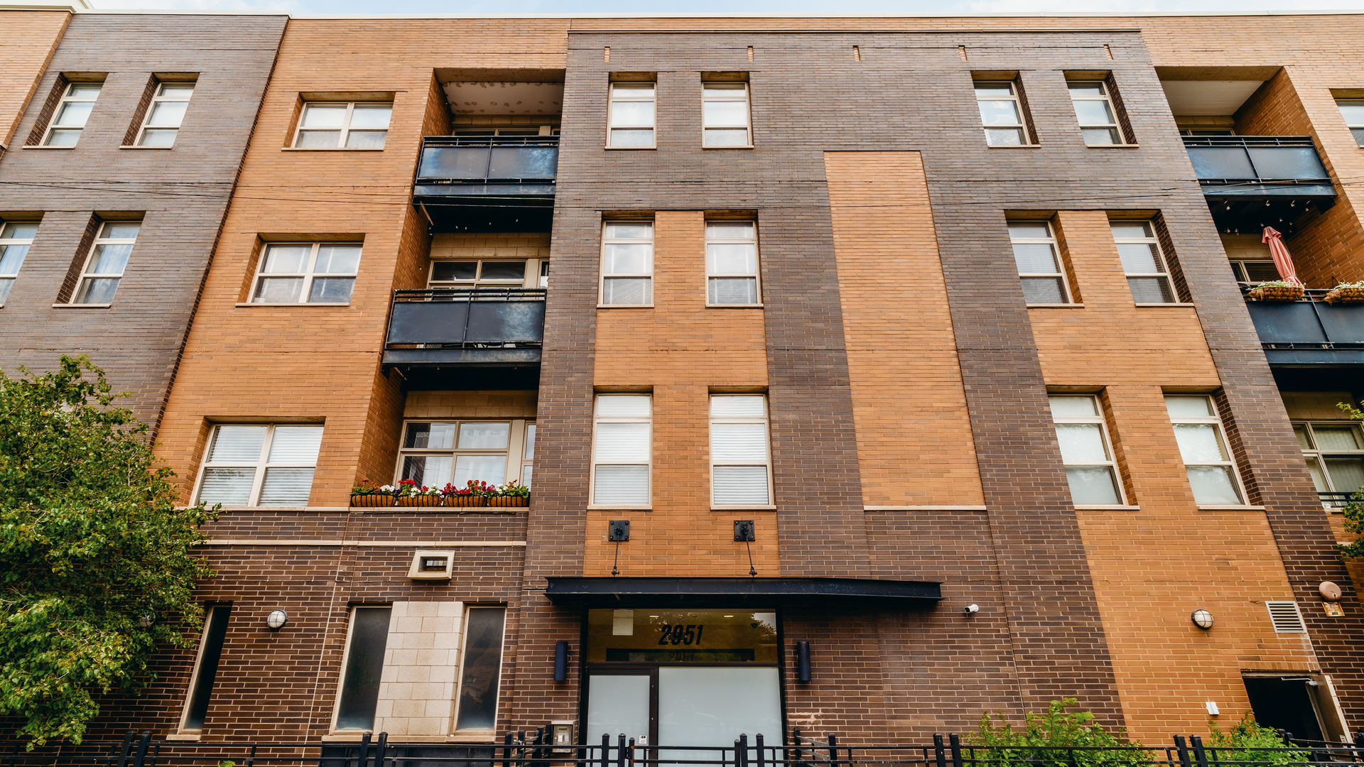 Driving South on Western Ave, turn left onto Clybourn Ave at six-pt intersection. Home will be on your left after Wellington Ave.
