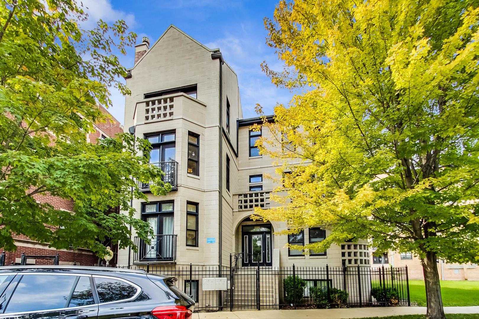 Architecturally eye catching & intimate six-unit brick & stone building overlooking the historic boulevard in prime location. Renovated & bright three-bedroom, two full bath condo with so many desirable features. This recently painted home boasts a modern kitchen with Viking stainless steel stove, new Bosch dishwasher & Samsung refrigerator, granite countertops, island with breakfast bar, beautiful woodwork, a gas fireplace, in-unit W/D and private balcony off the main bedroom. Newly sanded hardwood floors throughout, too! Spacious primary en-suite with dual sinks, separate tub & shower, two sizable bedrooms with an updated guest bath complete the space. Steps from the famed Drexel Boulevard fountain and walkway. Gated secured parking & storage unit included. Ideal location close to transportation, Mariano's, lakefront trails, Lake Shore Drive and downtown.