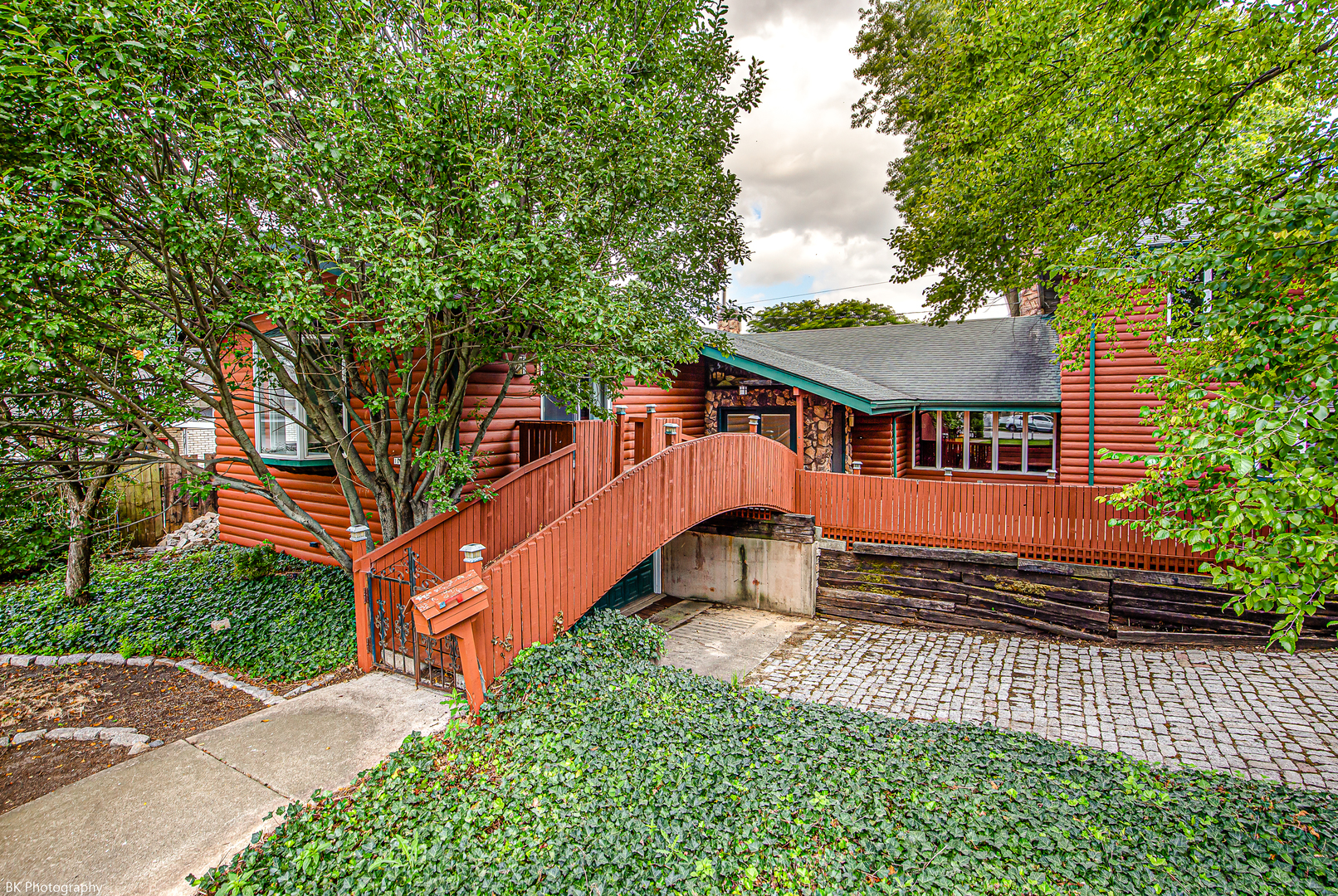 Gorgeous 5 bedroom 3 bathroom log cabin style home has 3,054 sf above grade and is on a 120X132 foot (.369 acre) lot! This one of a kind home features beautiful walnut floors, vaulted ceilings, hardwood plank ceilings, and cedar lined closets. Inviting foyer with beautiful stained glass window and large entry closet, huge living/great room with gas fireplace and built in entertainment center with flat screen TV (included), gourmet kitchen with cherry cabinets, Corian counter-tops, pantry, garden window overlooking the deck, recessed lighting and seated island. The kitchen overlooks a large dining area. The main level has a sun room with skylights and fireplace, fully remodeled bath with a waterfall ceiling spouted soaker tub and full size laundry room with sink. The north wing boasts a huge master bedroom with fireplace (bed stays), walk in closet, two additional closets, sliding doors to deck and full modern bathroom with luxury multi-head shower and custom cabinetry. The south wing has three good sized bedrooms, one with it's own bath. The lower lever level has a bedroom/den and access to the attached two car garage. Park like fenced yard with seated deck and bridge. Granite stone driveway. Zoned HVAC. Newer: tankless hot water heater (1 year), furnace 1 (2021) , furnace 2 (4-5 years), stove (5 years), central air (10 years), tear off roof, skylights, sun room windows, kitchen (15 years) and master bath (2005). Fantastic location across from the Oakview center, park and theatre. Close to Mariano's, Starbuck's, restaurants, shopping and quick access to I-294!