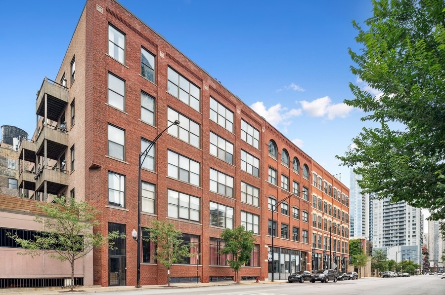 Looking for something unique and truly "Chicago"? Then this timber loft is for you! Has all the architectural elements loft lovers are looking for: exposed brick, high ceilings and gorgeous timber beams. Live in the best part of River North in this quiet pocket near the Riverwalk and Ward Park but yet close to all the restaurants and entertainment River North is famous for. The design is the perfect mix of historic architecture complemented with modern features. Soaring 14' high ceilings with an expansive wall of south facing windows for tons of natural light and gorgeous unobstructed Chicago skyline views. This 1250 sq ft space has been converted from a 2-bedroom to a 1-bedroom offering a massive open-concept living space that is perfect for entertaining. Unit is in turn-key, move-in condition with tons of modern upgrades from the current owner. Open kitchen has stainless steel appliances, new cabinets, quartz countertops, under-mount lighting and an extended built-in butler bar/buffet with mood lighting along the dining area that is an entertainers' dream! Cozy up on cold winter nights to a warm wood-burning fireplace with custom stone surround, limestone hearth and a stylish built-in media cabinet. Primary bedroom is fully enclosed with a huge walk-in closet that has been fully customized to perfection. Primary ensuite bath has radiant floor heating, dual vanities plus a walk-in steam shower. Second bath has tub and new vanity. The massive multi-functional living/dining/work space has a lot of flexibility based on your lifestyle and needs. Second bedroom was removed and certainly can be added back or plenty of space to add a home office. True hardwood floors throughout, brand new HVAC, in-unit W/D, new custom closet doors in hallway and modern light fixtures throughout. Ample storage within the unit plus you get your own massive walk-in storage ROOM located in the lower level and a shared bike room. This boutique building is well-managed and has a beautifully landscaped outdoor courtyard that makes for a perfect natural oasis to escape to while in the heart of the city. This prime location cannot be beat! A block from the East Bank Club and close to dog parks, the river walk, shopping and all the bars and restaurants that makes the East Bank area of River North so desirable. Easy access to the expressways, near the Brown & Purple lines for easy commute to the loop plus tons of buses to choose from. Garage parking space #26 available for additional $30k. Don't wait, book your showing today before this rare one-of-a-kind beauty is gone!