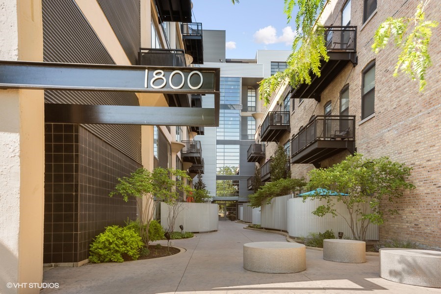 Now available "The Loft at 1800" North Center Lakeview neighborhood... This two bedroom loft in a former cap and gown factory, turned luxury lofts, have been featured in Chicago Magazine. Open living room is highlighted by soaring 15ft ceilings and floor- to-ceiling windows, hardwood floors and fresh paint throughout. The spacious kitchen includes high-end Bosche appliances, brand new marble countertops, a massive kitchen island and updated lighting. Primary bedroom includes fantastic closet space and an en-suite, spa-like bathroom with updated lighting. The second bedroom is perfect for a home office, nursery or guest room. Home amenities also include in-unit laundry, large private balcony (with updated teak flooring), individual storage lockers, secure package room, bike storage and heated garage. Deeded garage space is available. The 1800 Lofts building also features a fitness center and a roof top deck, complete with grills, lounge chairs and spectacular city skyline views. This location is unbeatable; Trader Joe's across the street, commuter's dream location, two CTA Brown Line stops just blocks away and the best of North Center/Lakeview restaurants/city life, all within walking distance. Deeded garage space is available for $25,000.