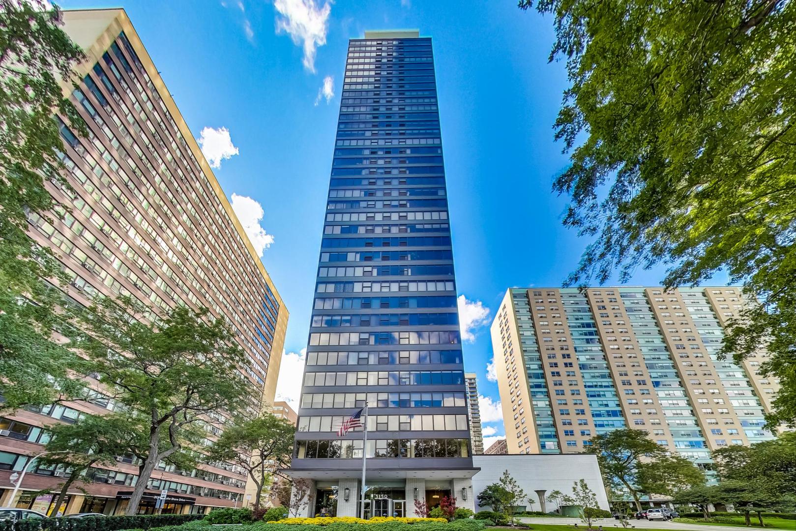 Experience absolutely stunning views in every direction from your 2,200 sqft 3bed/2.5bath corner unit at the prestigious 3150 N Lake Shore Dr! This tier "A" unit, the most highly desired tier in the building with unobstructed views of Lake Michigan from nearly every room, is the highest floor unit of its kind to come to market in nearly 5 years! And this home has the added bonus of being one of the ONLY units in the building with an in-unit washer and dryer! The home has been meticulously cared for and updated over time by its owners of nearly 30 years, with an unsurpassed level of detail and high-quality craftsmanship displayed across the many custom features found throughout the home! Come see it to believe it, and be sure to take a peek at the 3D Tour in the accompanying link! As you enter the home, a stylized foyer welcomes you in before you turn the corner to your wide open living and dining room area flooded with light from a wall of windows that wrap around the entire room. You cannot help but to stare in awe at the serene backdrop of a bright blue Lake Michigan, that appears so close you could almost touch it! This large open living space is great for relaxing, or elevating your evening entertainment with the truly unforgettable picturesque scenery! The updated kitchen features pro-style appliances, sleek European-style cabinetry, granite countertops and a contemporary backsplash. Down the hall, the primary suite also enjoys a corner location wrapped in windows, and includes 2 closets and plenty of built-in storage around the perimeter. The ensuite boasts a granite-topped vanity as well as a walk-in shower with dual shower heads. The second and third bedrooms have more custom built-ins, with the potential to use one as the perfect home office or den! Looking for outdoor space? This building offers a pool & patio, as well as an amazing rooftop deck that wraps around the building - offering arguably the best rooftop views in the city! Residents enjoy a number of other key amenities such as a fitness center, a community room, and a 24-hr doorman. This location puts you in the middle of everything, with walking paths along the lake, plus golfing, Lincoln Park Zoo, Diversey Harbor and so much more. Heated garage parking readily available for $200/month. Schedule your private showing today!