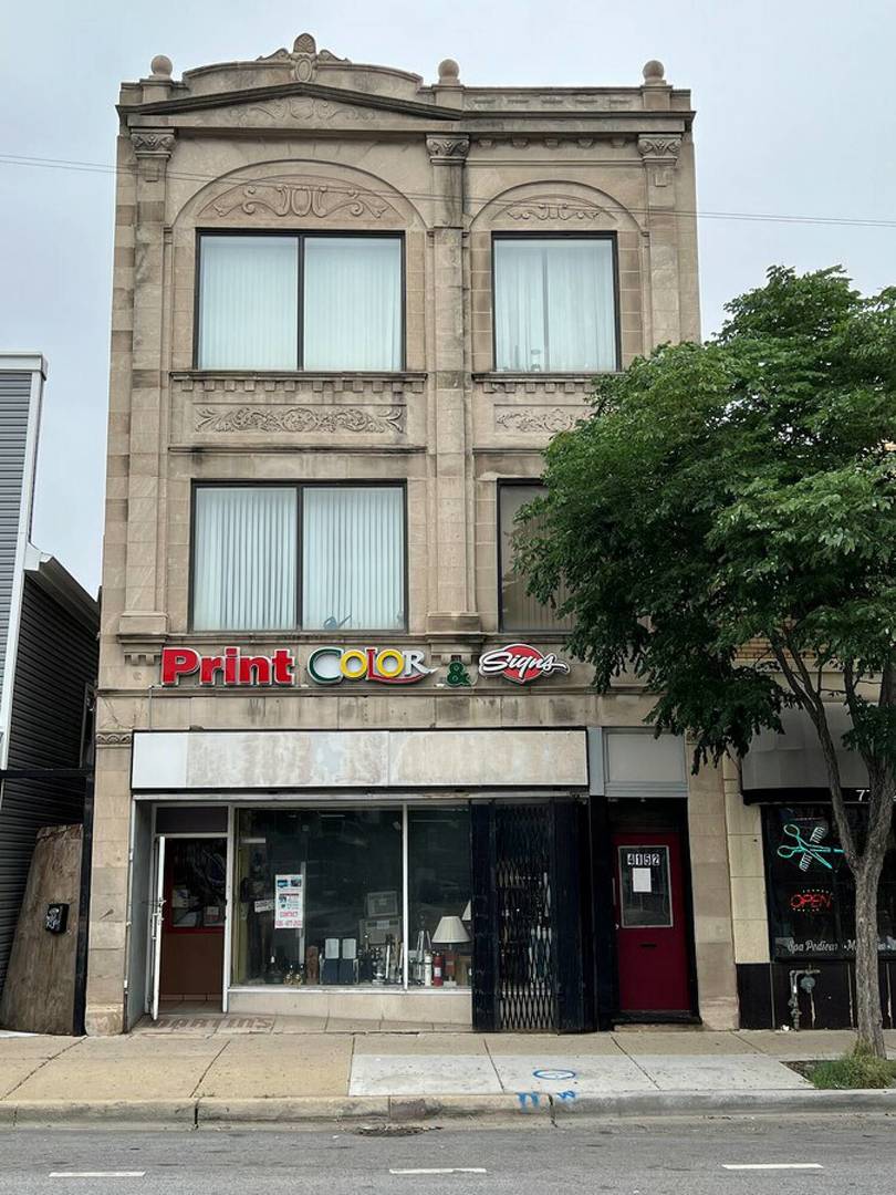 Great building for Investors! 3 units, all occupied and large basement with detached 2 car garage. High traffic area. Updated and well maintained building.