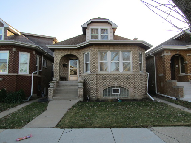 Chicago all brick bungalow located in hot Belmont Cragin. Great bones with 5 bedrooms and 2 baths. Main level offers large size of living room, separate dining room, 2 bedrooms and kitchen with table space, hardwood floors 1st floor. 2nd floor has 2 additional bedrooms, full finished basement with family room , summer kitchen, bath and additional bedroom. Nice sized back yard w/2 car garage. brand new furnace and garage floor. Lots of space and options with this home. A must see, property sold in "as is" condition. Some of the TV's can stay.