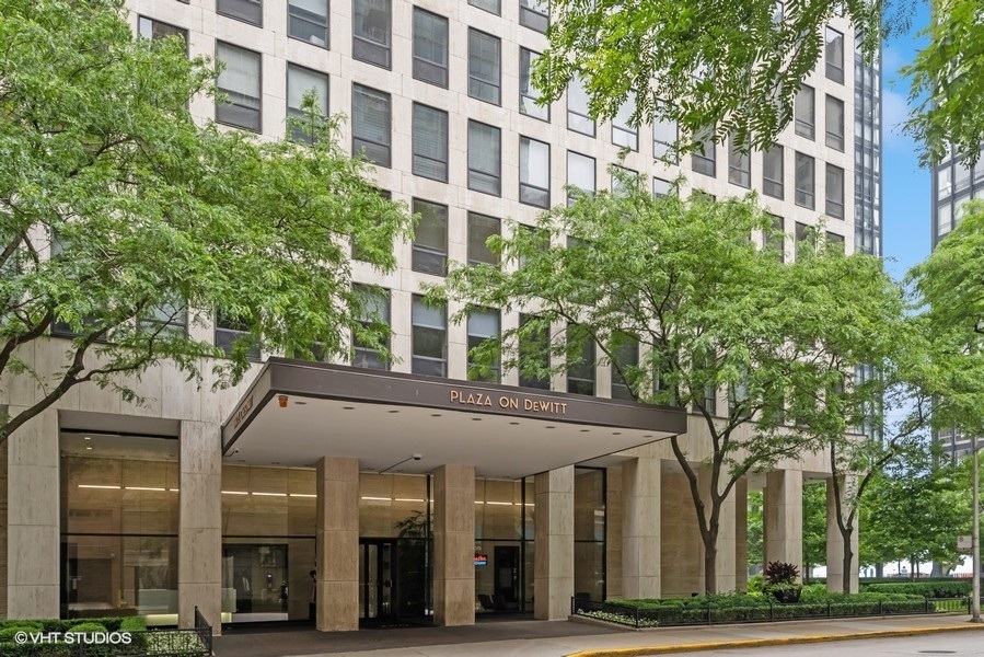 Prime location in the coveted Plaza on Dewitt building nestled in the Streeterville neighborhood. Close to all of what Streeterville has to offer, shopping, dining, museums, theater, parks, and the lake. This NE facing 2 bed 2 bath condo has floor to ceiling windows with Lake Michigan views in every room. You walk into a formal entry way with hardwood floors that lead into a large living and dining room. Great for entertaining. The large primary bedroom includes an en-suite bathroom and walk-in closet. Amenities include 24 hour door staff, on site management and engineering, receiving room for package deliveries, hospitality room, amazing 360 views from rooftop sun deck with outdoor pool, party room, fitness center including weight and cardio rooms, bike room, storage locker, large modern laundry room, cleaners and restaurant in the building, and attached heated rental parking. Pet friendly building up to 25 lbs.