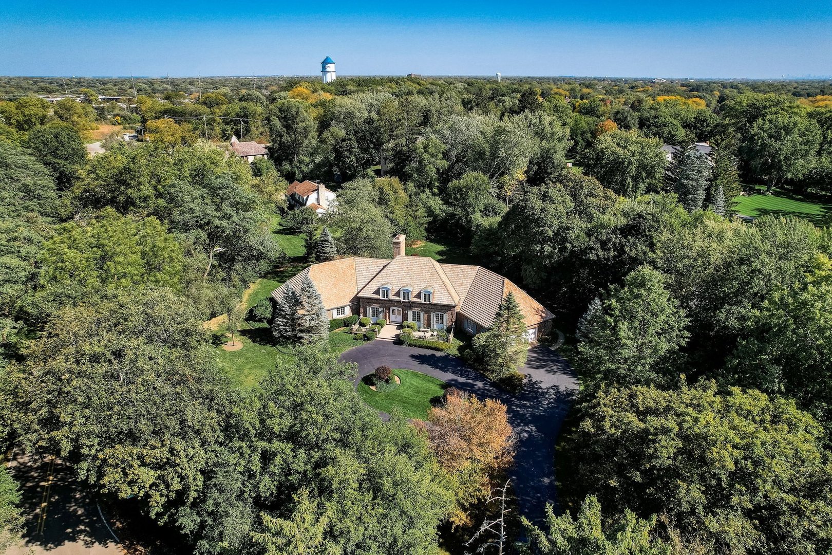 Crafted by noted architect, Robert Parker Coffin of Chicago, this exceptional estate seamlessly fuses sophistication with comfort. It retains many of its distinctive features, showcasing exquisite millwork and bespoke flooring meticulously fashioned from an array of wood varieties, including hickory, oak, maple, and cherry, to name just a few. Throughout the property, you'll find an unmistakable influence reminiscent of the French Quarter, evident in the intricately designed door hardware, elegant light fixtures, and a wine cellar that exudes the ambiance of an exclusive speakeasy. Step into the grandeur of the rotunda foyer, graced by a gracefully curved staircase that sets the stage for a dramatic entrance. The main floor accommodates two luxurious suites and a cozy den, making it conducive to one-level living. The formal living room commands attention with its sweeping panoramic views of the picturesque surroundings, evoking a glamorous Hollywood ambiance, complemented by an ornate wood-encased fireplace. For more intimate gatherings, the family room exudes timeless class, adorned with rich wood beams, a rustic brick fireplace, and a discreetly concealed bar. The kitchen underwent a tasteful renovation and features a suite of high-end appliances, including a Thermador cooktop, double oven, and SubZero refrigerator-freezer. Granite countertops and French provincial-inspired ivory cabinets with a glazed finish evoke the charm of Louisiana. Ascend to the upper level via one of two staircases to discover two additional bedrooms and two full baths. One of these baths could have been plucked from a Hollywood script, with its exquisite mosaic tile step-up and a curtained soaking tub. The other full bath harbors a 'secret' feature that you'll have to discover for yourself! The expansive great room on the second level boasts impressive beamed ceilings, offering a versatile space for entertaining guests. Whether you envision it as a billiards area, a gaming retreat, or a serene spot by one of the three charming stone wall fireplaces sprinkled throughout the home, the possibilities are endless. Throughout the living spaces of this residence, you'll find an abundance of well-appointed closets, ensuring ample storage options. If that's not enough, the basement offers the potential for even more living or storage space, catering to your specific needs. The expansive mudroom/laundry area grants access to the stunning paver patio, which extends nearly the entire length of the house and includes a built-in gas grill. The property is equipped with zoned HVAC, a cedar shake roof, and has seen diligent maintenance of every system. A Generac generator, central vacuum system, and a functional intercom system round out the impressive list of amenities. Conveniently situated within walking distance of the Inverness Golf Club and in close proximity to the Metra station and downtown Palatine, renowned for its diverse array of dining options, this exquisite home offers an unparalleled living experience that truly must be seen in person to be fully appreciated.