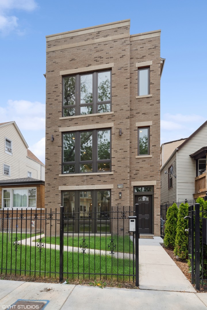 NEW CONSTUCTION! Spectacular 3/2, sprawling the entire first floor of intimate 3-unit building. Minutes to restaurants, cafes, CTA and the best of Belmont-Craigin offers. Extra-wide living spaces, massive sun-drenched private patio off the primary bedroom. Hardwood floors throughout. Stunning chef's kitchen- high-end stainless-steel appliances, granite countertops, eat-at island with exceptional storage. Showroom finishes everywhere! Primary bath with spa finishes. Secondary bath shines with gorgeous finishes. Second and third bedrooms with plenty of closets and flexible space options. Stackable full size new washer & dryer. 1 car parking, bonus storage space and in unit front door camera. You won't want to miss out on this exceptional home.