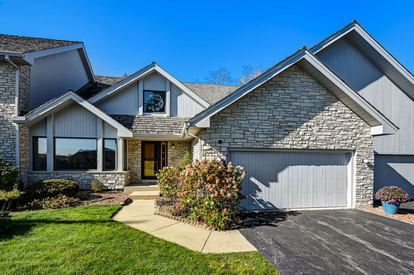 Stone & cedar townhome in beautiful Oak Creek Club * gated community * Peaceful setting backing to trees * Open & airy floor plan * Volume ceilings * skylights * in-demand 1st floor primary bedroom & bath has spacious sitting room & sliders to deck * NEWER composite deck in 2021 * 1st floor laundry * 3 levels of grand living each with bedroom and bath * great for in-law * two story foyer * Walk out Lower level family room with custom stone fireplace * Great entertaining space * Spacious bedroom with Newer glass sliding door (2020) & Newer carpet * Custom wet bar with refrigerator and wine bar * additional bonus room could be office/den/workroom * Tons of storage space * Eat in kitchen with custom shades (2021) * Corian counters, and oak cabinetry * Dishwasher NEW 2018 * Stainless side by side refrigerator BRAND NEW 2023. 2nd floor has loft & 2nd primary BR with NEW double windows (2020) and bath, & 3rd bedroom. Cedar shake roof & skylights NEW in 2014. 2 Furnaces NEW in 2018 & 2019. Grill NEW 2022. Conveniently located close to Burr Ridge Village Center shops & restaurants & easy access to I-55 and Chicago. Well maintained but being sold "as is".