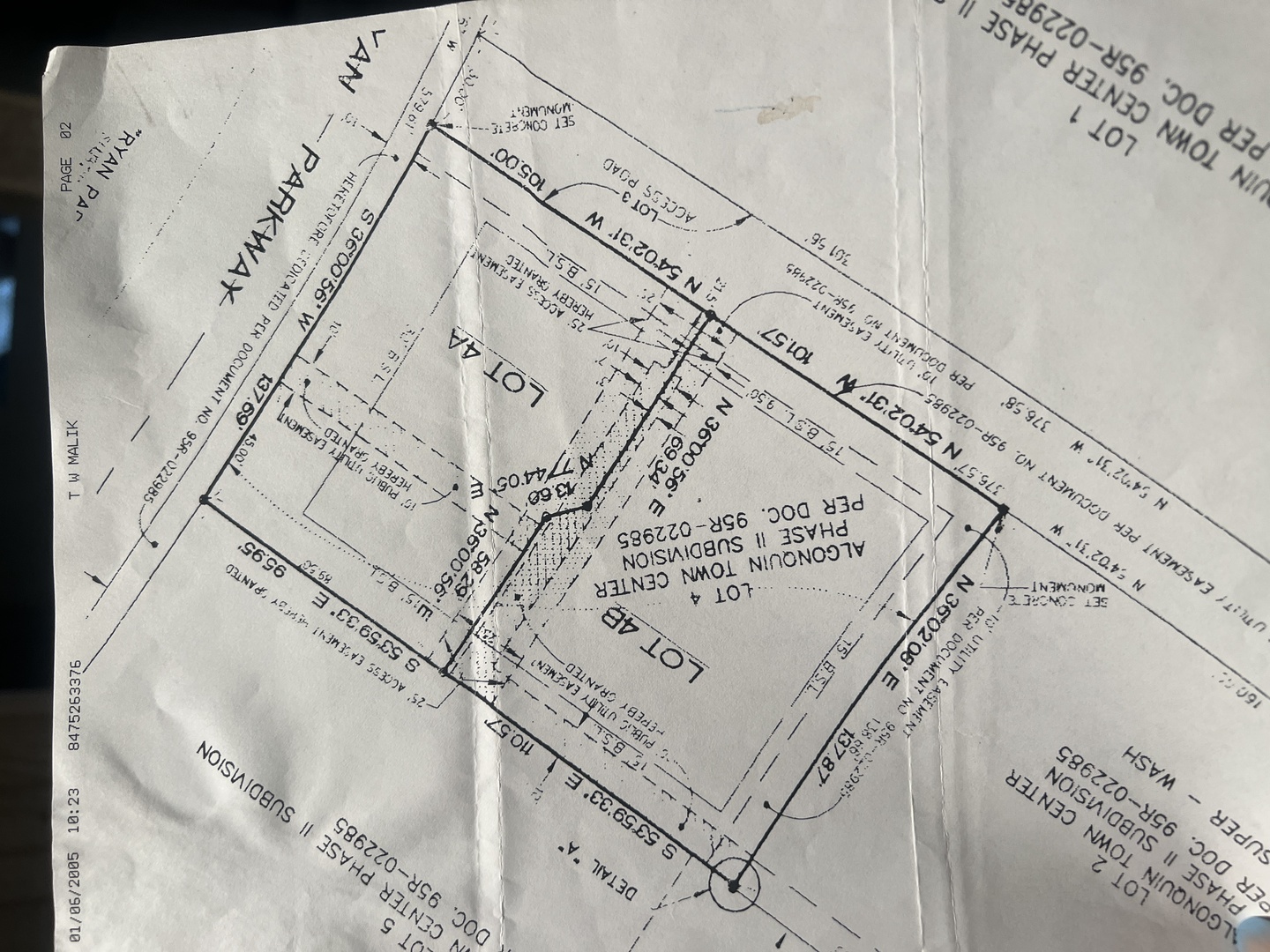 Vacant lot c2 zoned 15,244.28 sq ft 137.87x110.57 located in Algonquin town center with Starbucks, Verizon, Lube Pros and Chase Bank