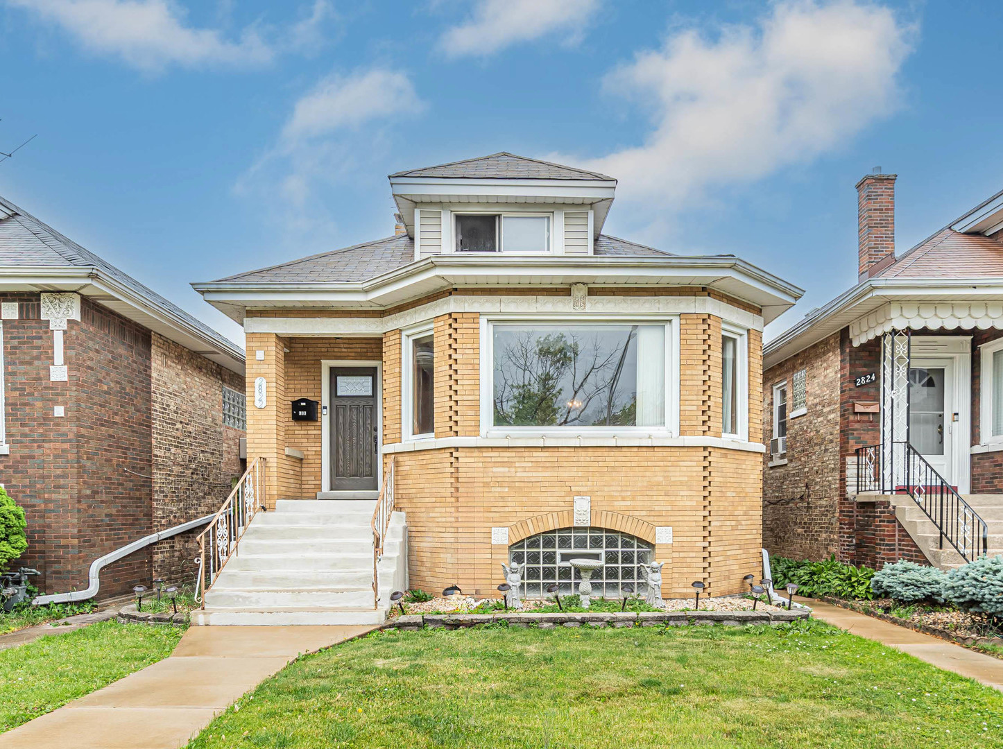 Welcome to this huge octagon bungalow with 3 bedrooms plus an additional basement bedroom. Finished basement offers a possible summer kitchen or living space for extended family and a large storage area big enough to be another room. Large living and dinning room with hardwood floors. Two 1st floor bedrooms and a very nice kitchen featuring a center island, granite countertops and stainless steel appliances. 1st floor also features a 3 season room off kitchen. 2nd floor has a large 28x11 bedroom and large walk in closet. perfect for large families or related living. Best of all unlike many Elmwood Park bungalows this home has newer central air conditioning. It also has new concrete sidewalks and front porch along with a sewer back up prevention system for peace of mind. In the fenced yard you will find a nice swimming pool to enjoy this summer and a newer 2 car detached garage. You can send the kids right across the street to John Mills school, also a block walk to a playground for kids. Move right in ! * Swimming pool can stay or be removed* Just bring your decorating ideas.