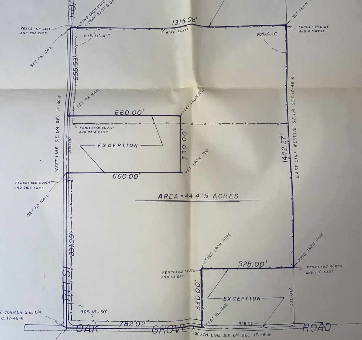 44.04 acre site with 41.46 being tillable. Located at the northeast corner or Oak Grove Rd. and Reese Rd. Easy access to property from both roads. Perfect for single family home or hobby farm.