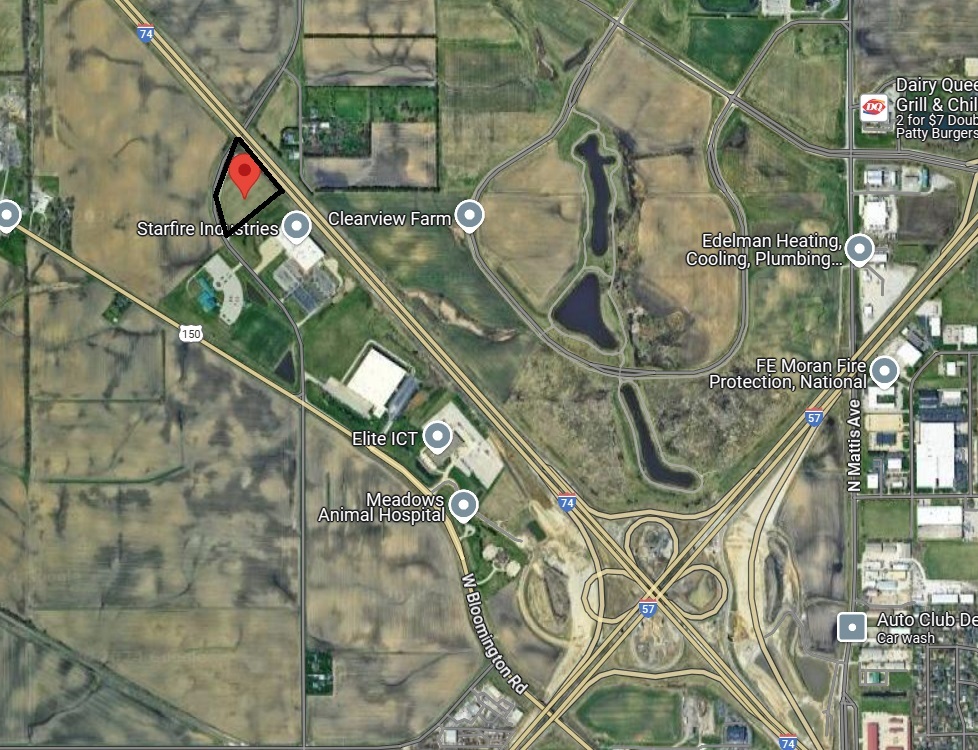 Positioned within the well-established Atkins West Business Park, this 5.9-acre shovel-ready parcel offers the perfect foundation for a growing business. Located at 3402 N Duncan, the property is strategically situated just off US Route 150, ensuring excellent connectivity and convenience. Key Features: Strategic Location: Immediate access to Interstate 74 and Interstate 57 via a nearby interchange. High Visibility: Prominent exposure along the busy Interstate 74 corridor. Utility Infrastructure: Utility connections are conveniently located in close proximity, simplifying development. Economic Incentives: Situated within an enterprise zone, providing potential buyers with economic development incentives to support growth. This property is ideal for businesses seeking a prime location with exceptional access and visibility. Great location for solar farm. Additional Note: The current property owner will retain rights to the cell tower and its income via a ground lease/easement established upon the property's sale at the current pricing. Below is summary of the cell tower and possible purchase of the property to include the cell tower. Tower Sale/Lease Assignment: The seller would entertain offers on the entire property, including the cell tower (which he owns) and a lease assignment with Verizon. Contact listing agent for lease terms. Verizon Wireless is the only collocator at the present time with the tower engineered to support three carriers plus two microwave dishes. The tower is a 199' Sabre self-supporting tower. Again, this would include the 5.9 acres.