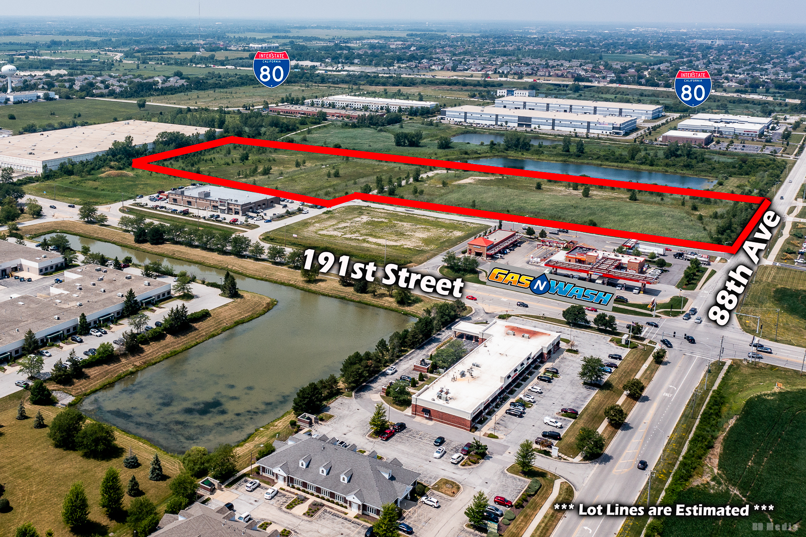 Prime commercial site in Mokena! 8.5-17.81 acres (pad-ready, fully improved, netof detention). Zoned C1-A with flexible permitted uses including medical, retail, assisted living, hotel, auto dealership, recreation, and many more options! Outstanding visibility at a intersection just 1/2 mile from the I-80/ Rt 45 (Lagrange Rd) full interchange. All infrastructure in place, water, sewer, utilities, and roads. High-traffic location with strong area demographics and low Will County taxes.