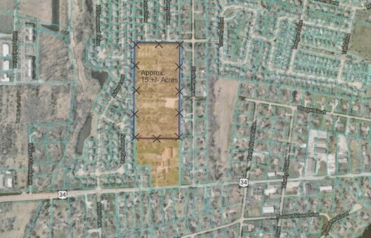 East of Orchard Rd. on north side of Rt. 34 Property is only accessible from Rt. 34 to Clark Avenue to Osage Crt. Visible from Osage & Clark on the East and from north end at Bentson St., Bayberry Dr. & Spruce Dr. in Gates Creek Subdivision.