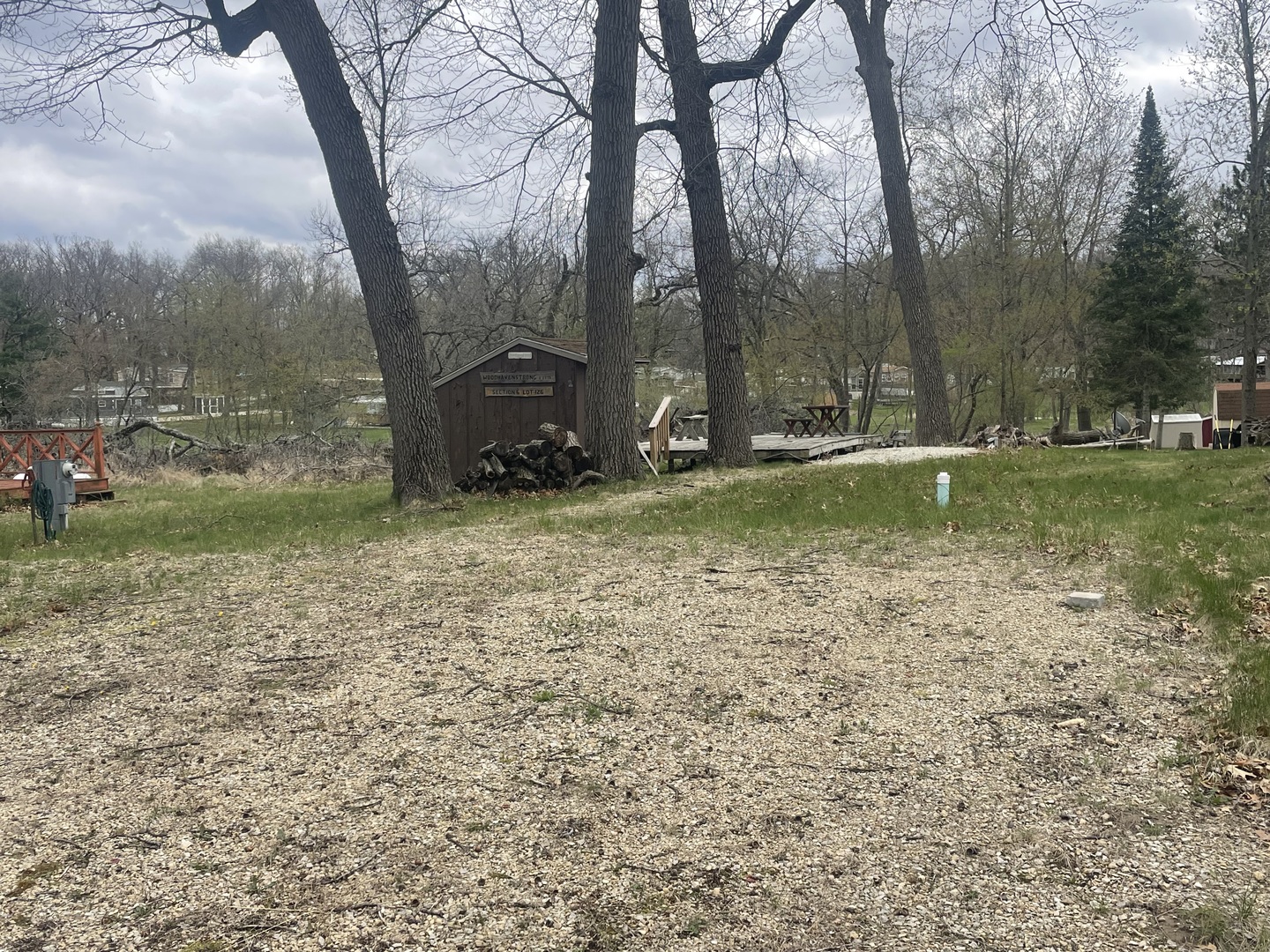 Double Gravel Drive that is convenient for parking multiple vehicles or for easy access. Also, water, sewer, and electricity extended to the gravel pad is a significant advantage, making it ready for use, whether for RV camping or building a structure. A deck is a nice addition for outdoor camping, providing a comfortable space to relax and enjoy your surroundings. Shed with refrigerator, grill and other contents, small shed in back for firewood, and extra firewood throughout the property. Common area the rear, close to a comfort station and store and pool 1 area. Call today for a showing! Woodhaven Lakes offers access to the 7 lakes, fishing ponds, two pools, beach, recreational complex, playground, general store, trails for hiking, cross country skiing, and snowmobiling. Please note that Woodhaven Lakes is a gated recreational community and cannot be used as a primary residence or homestead. You must be accompanied by a broker to view any properties. Property owner pays the association fees.