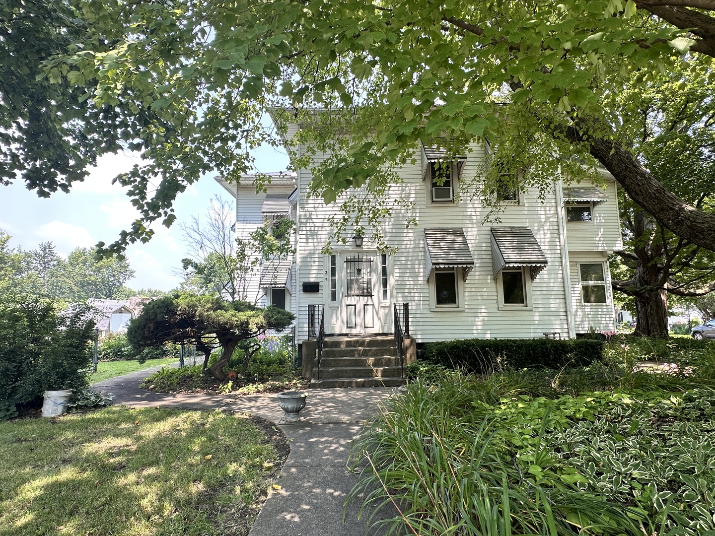 This cherished home has been lovingly maintained by the same family for over 50 years! Four spacious bedrooms-including one conveniently located on the main floor-this home is full of timeless charm, highlighted by hardwood floors, antique sconces and an original beautiful open staircase. Enjoy the generously sized kitchen and separate dining room. The vaulted-ceiling sunroom offers a stunning view of the beautifully landscaped yard, creating a peaceful space to relax in. The basement is functional and versatile, complete with a full bath. Outdoors, you'll find a covered deck, his and hers garden sheds, a workshop adjacent to the two-car garage, a perfect garden spot with perennials galore. Sitting proudly on a pristine, nearly half-acre corner lot, this stately home boasts a massive yard with mature landscaping and steel roofs on both the home and garage. Farmer City is an easy 30 min drive to Champaign or Bloomington. The perfect property in the perfect location!!