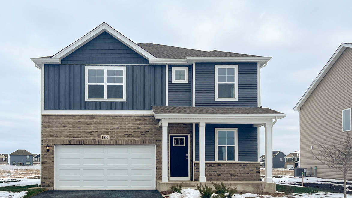 Discover yourself at 1810 Overland Drive in Plainfield, Illinois, a beautiful new home for sale in our Ashford Place community. This home is move-in ready NOW! This home includes a beautiful brick front facing on the garage and fully sodded yard. This Holcombe plan offers 2,356 square feet of living space with a flex room, 4 bedrooms, 2.5 baths, 9-foot ceilings on first floor, and full basement. Entertaining will be easy in this open-concept kitchen and family room layout with a large island with an overhang for stools and white designer cabinetry. Additionally, the kitchen features a walk-in pantry, modern stainless-steel appliances, quartz countertops, and easy-to-maintain luxury vinyl plank flooring. Enjoy your private getaway with your large primary bedroom and en suite bathroom with a raised height dual sink, quartz top vanity, and walk-in shower with chic wall surrounds and decorative glass shower doors. Convenient walk-in laundry room, 3 additional bedrooms with a full second bath and a linen closet complete the second floor. All Chicago homes include our America's Smart Home Technology. Exterior photo of actual home. Interior Photos are of similar home and model home. Actual home built may vary.
