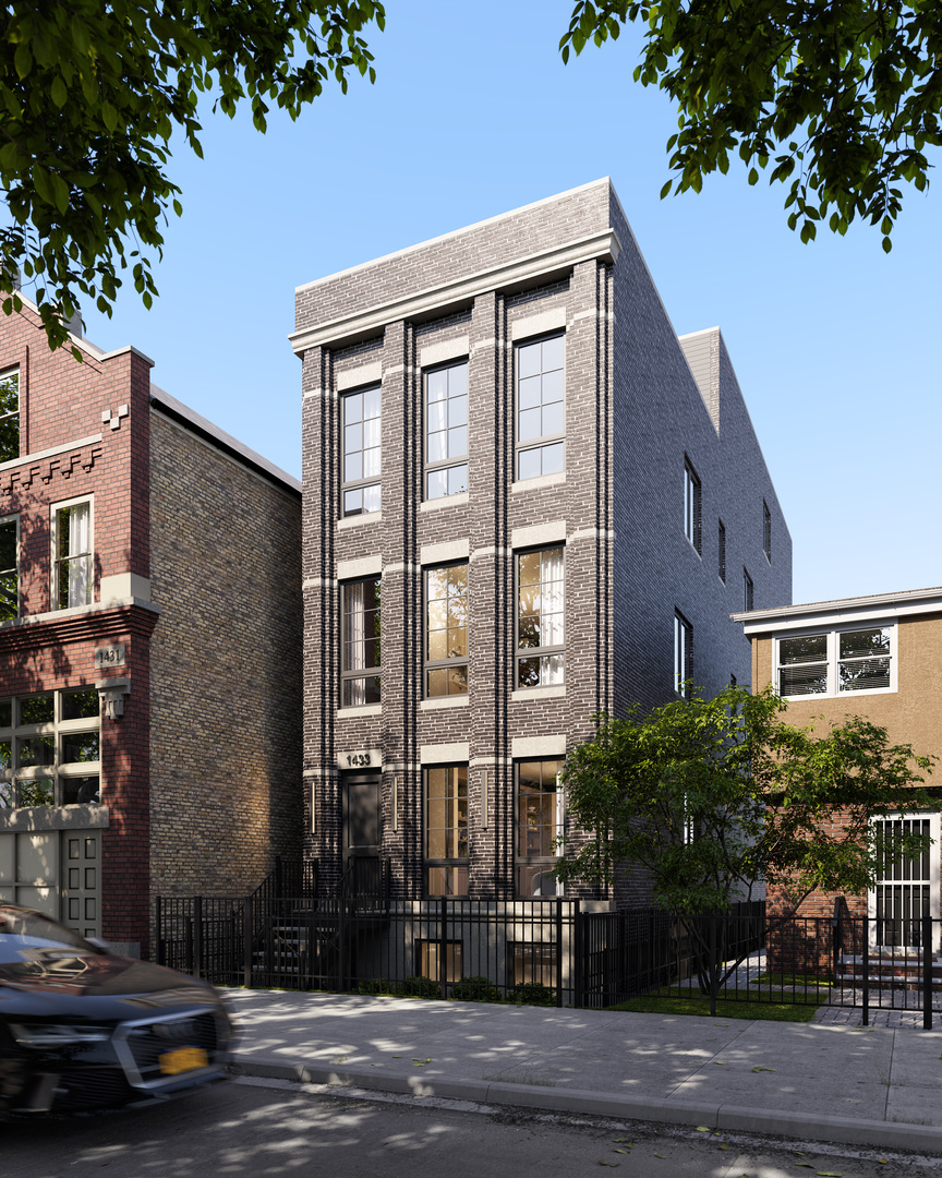 SOLD BEFORE PRINT. New construction 4 bedroom/ 3.5 bath duplex down on a lovely tree lined street in West Town. This highly upgraded residence offers an open floor plan featuring a front living and dining area with decorative oak ceiling beams, wall paneling and designer sconces. Beautiful custom kitchen and butler pantry with rift cut white oak cabinetry, a custom hood cover, integrated appliances, LED accent lighting and walk in pantry. Powder room with designer wallpaper and wall mounted marble sink. Family room features white oak built ins, gas fireplace, mudroom and 12' bifold doors opening to 17' x 14' covered terrace featuring outdoor heaters and a custom gas fireplace. Lower level features radiant heat throughout with large master suite with spa-like bathroom highlighted by a huge shower, soaker tub, and white oak double sink vanity. 3 other large bedrooms and two designer baths complete the lower level. Unit is pre-wired for surround sound and motorized window treatments. Extensive soundproofing features throughout. Deck above the garage included with this unit. Smart home features, security camera system and 1 garage parking space included. Delivery expected January 2026.