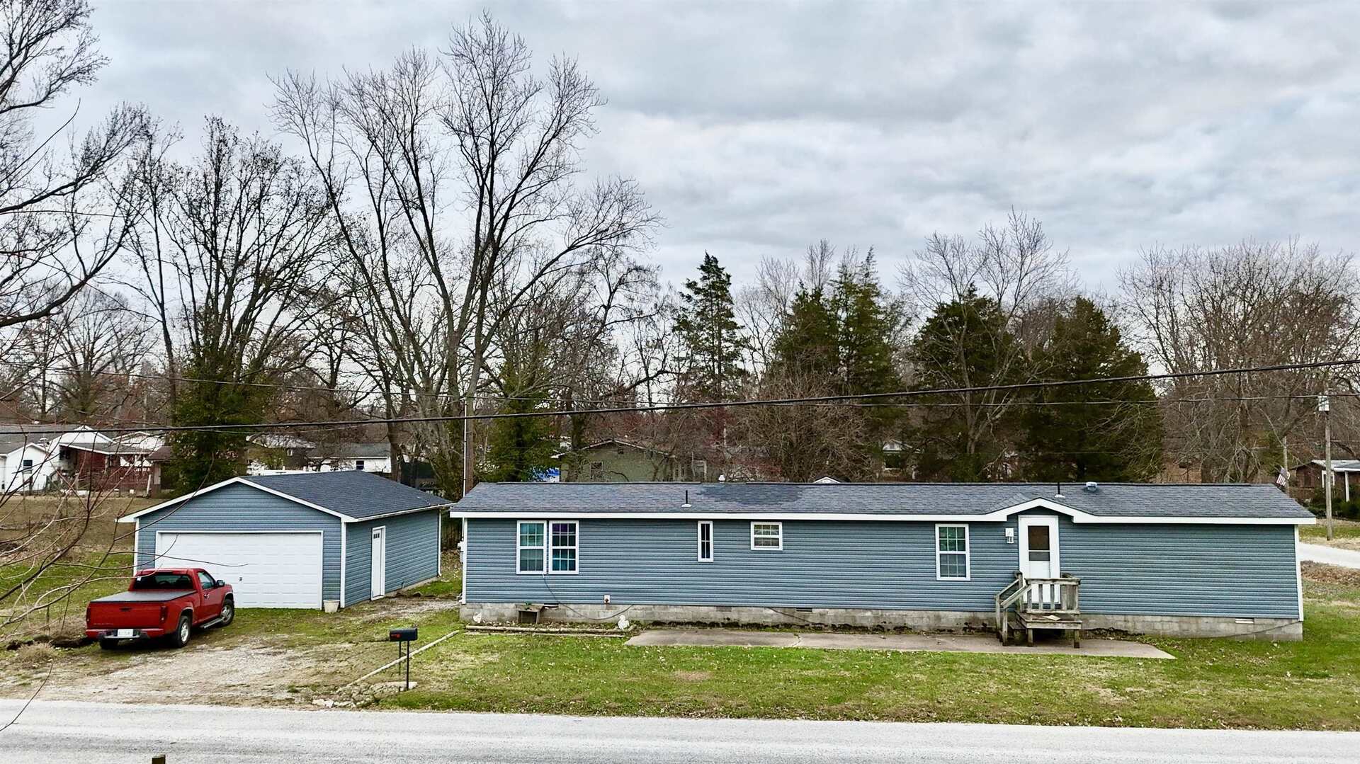 This charming mobile home sits on a corner lot and has been nicely updated for comfortable living. Vinyl siding adds curb appeal, while hardwood floors in the kitchen and living room create a warm, inviting space. One bedroom features durable LVP flooring, and the second bedroom has brand new carpet. With 1.5 bathrooms, a detached two car garage, and a concrete patio just outside the back door, this home offers both function and flexibility. All appliances stay including the washer and dryer, making it easy to move right in.