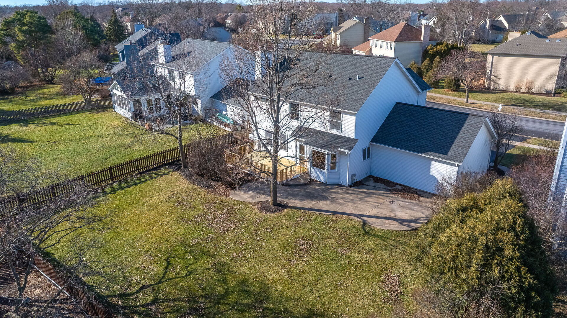 Enjoy all of the incredible amenities that the Oakhurst Subdivision has to offer to it's residents with this fantastic 4 bedroom home! The adorable covered front porch couldn't be a more perfect spot to enjoy your morning coffee. Step inside and notice the rich mocha stained hardwood floors that grace the entire 1st level and staircase! This heart of the home kitchen truly lives up to it's name here, it is the most wide open space, ready to accommodate a large kitchen table, and gatherings at the breakfast bar. Ample cabinet and pantry space is highlighted by the stainless steel appliances. Sunshine streams into the family room making it such a warm space to relax by the fireplace. A formal dining room with bay window makes for a wonderful entertaining space and the separate living room can be turned into an office/playroom/flex space so easily! The powder room has been beautifully remodeled, and the first floor laundry room boasts ample storage and front loader stainless washer and dryer. Wrought iron spindles and hardwood steps highlight the staircase to the 2nd floor. Here you will find a hardwood hallway leading to all 4 bedrooms, that all have just had new carpet installed. The Primary suite is extra large with a big walk in closet. Enjoy the oversized primary bathroom with separate deep soaking tub and shower, and dual sinks on a vanity with tons of storage! All of the additional bedrooms have also just been re carpeted and boast great closet space, and ceiling fans. The linen closet and guest bathroom round out the 2nd level. Bring your dream basement ideas to life in this full basement just waiting for all of your storage needs or finishing ideas! There is no crawlspace so it boasts a perfect opportunity to be creative in a wide open area. If a large yard is on your wish list, look no more! This is such a nice wide and deep lot and it's fully fenced! Enjoy the ease of entertaining on the maintenance free concrete patio and new deck. The lifestyle in Oakhurst is such a bonus. You will have soccer fields, basketball courts, sand volleyball, pickleball, tennis courts, miles of walking paths just steps outside your front door. Join the pool and clubhouse if you desire, we have award winning swim and water polo teams! If you like endless walking and biking opportunities you will find miles or paved paths around Waubonsie Lake, next to Oakhurst Forest Preserve and to Lake Patterson ( which also boasts a huge sled hill! ). Also walking distance to all 3 schools, Starbucks, Dunkin, Mariano's grocery and incredible food options! Minutes drive to the Rt. 59 train station, and downtown Naperville. You simply cannot go wrong, Welcome to Oakhurst! You'll be so happy with the updates you do not have to do! Sellers have updated : 2026 - All NEW carpet in the bedrooms. 2025 - NEW furnace, stainless refrigerator, deck, back up sump pump, and dishwasher. 2017 - NEW water heater, hardwood flooring. 2015 - NEW roof, washer/dryer, new bay windows installed.