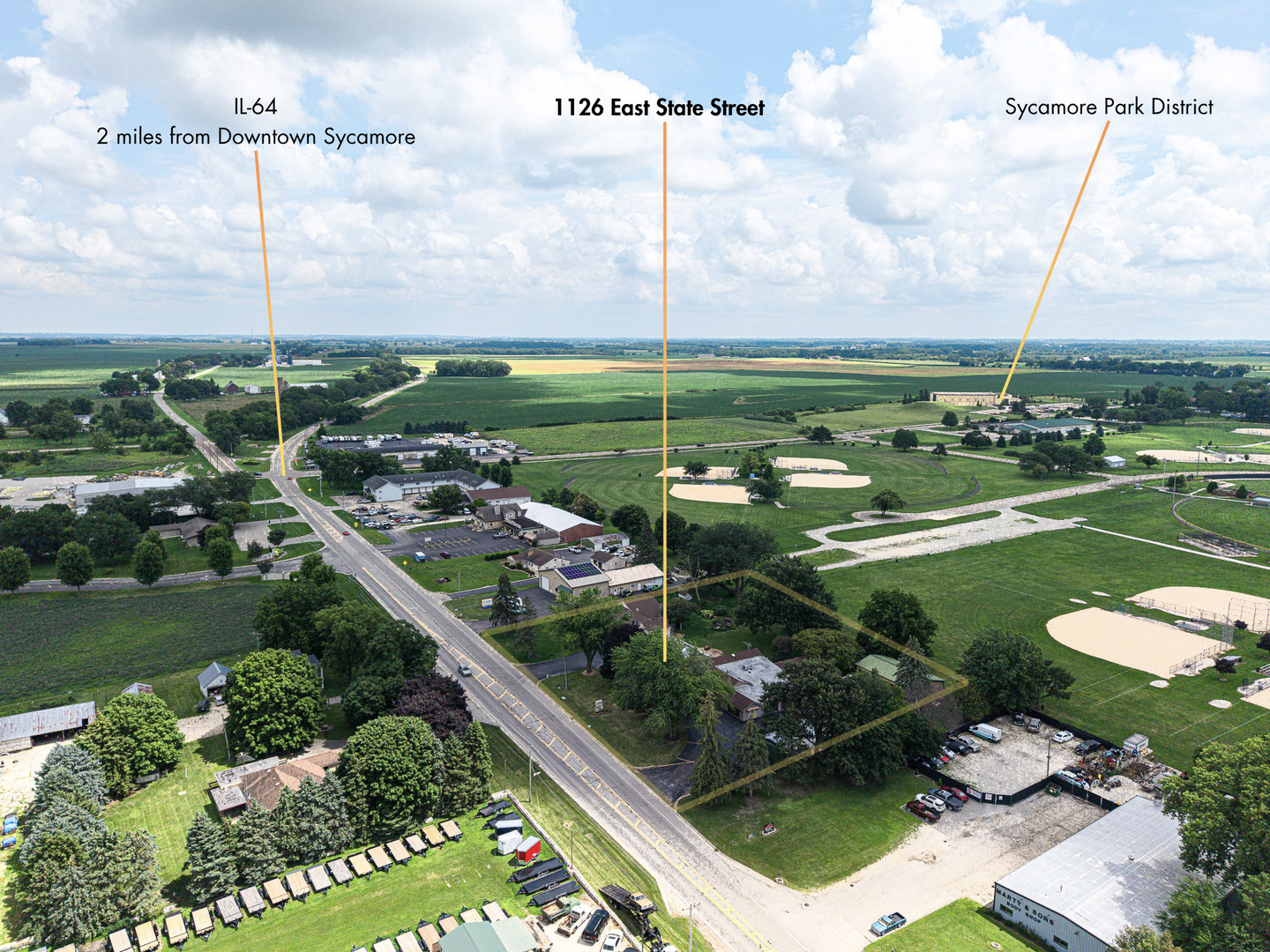 PRICE REDUCED! Real Estate for Sale or Lease! This unique nearly 2-acre commercial property in the heart of Sycamore offers a versatile opportunity for owner-users or investors-just 65 miles west of Chicago and adjacent to Sycamore Park District parks, trails, and amenities. The main commercial building spans 7503 square feet and includes retail or shop space, multiple storage rooms, private offices, bathroom, and multiple garage bays-ideal for a wide range of commercial uses. An attached 1,500 square foot greenhouse/atrium offers an open, flexible environment perfect for seasonal inventory, growing operations, or specialty retail. The property also features a 1,537 square foot detached garage with a heated shop, providing additional workspace, storage, or potential for further rental income. Included on-site is a legal non-conforming 3-bedroom, 1-bath single-family residence totaling 1,808 square feet, currently leased and generating immediate income. This versatile property allows for both owner-occupancy and income potential, with options to purchase or lease based on your business needs. Contact us today to learn more or schedule your private tour. Property sold "As-Is"