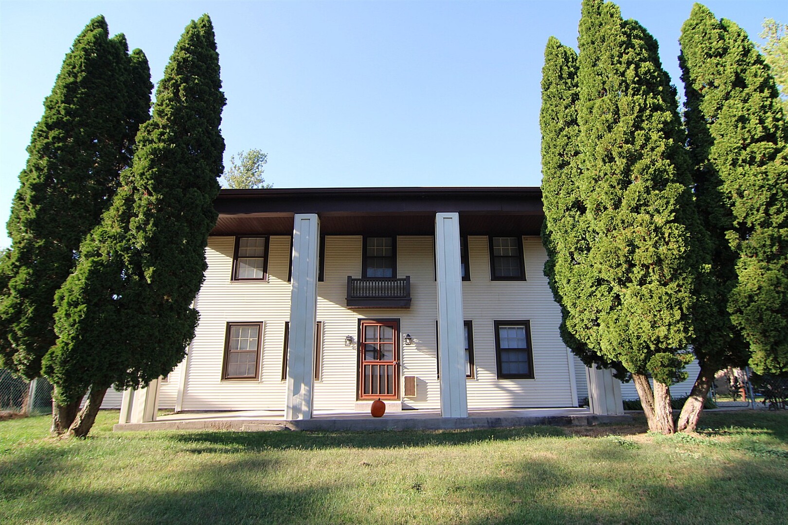 1900 Colonial 2 story home with such historic presence and many recent updates. All hardwoods beautifully restored and refinished, fresh paint throughout, bathrooms and kitchen updated with all new appliances. Stackable washer and dryer main level. Charming and cozy wood paneled den, large living room, formal dining room, kitchen, office and 3/4 bath main floor. The upstairs level has a nicely updated full bath and 3 bedrooms which includes a very large primary. Partial fencing in front along with a large patio space for summer entertaining. Roomy outdoor storage shed/workshop situated on 1+ acres with AG zoning. All appliances stay. HSA home warranty policy included.