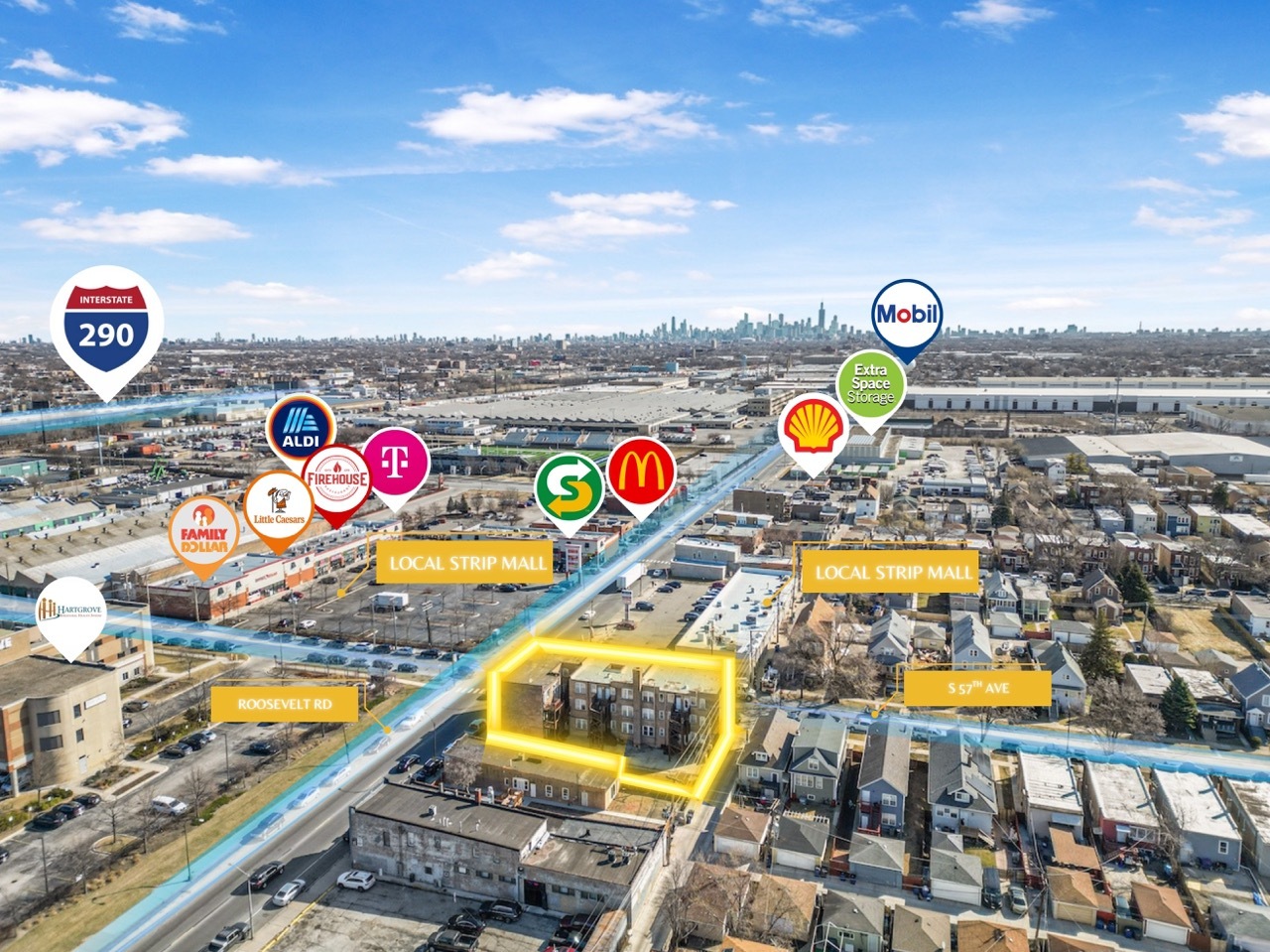 The Proano Commercial Group is pleased to present a compelling investment opportunity at 5701 W. Roosevelt Road in Cicero, Illinois. This turnkey 18-unit mixed-use property features two commercial storefronts and sixteen residential apartments, including a mix of studios, one-bedroom, and two-bedroom units. The building for the most part renovated, enjoys high occupancy, and is efficiently operated with separate utilities and individual furnaces. Situated just one mile from I-290 and approximately nine miles from downtown Chicago, the asset sits on a prime corner lot and includes an adjacent vacant parcel, offering a unique opportunity for future development or additional income streams.