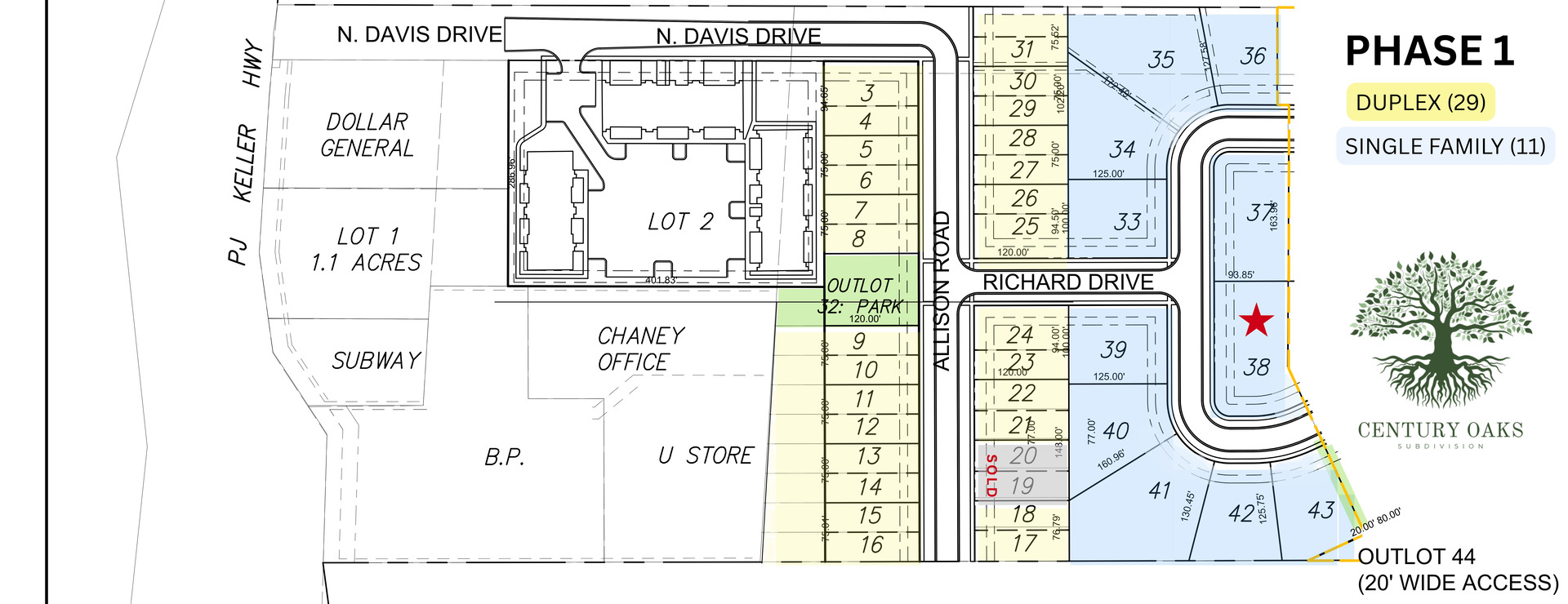 I-55 to Exit 178 (Lexington). East on PJ Keller Hwy. Turn Right into Century Oaks Subdivision to Lot 38.
