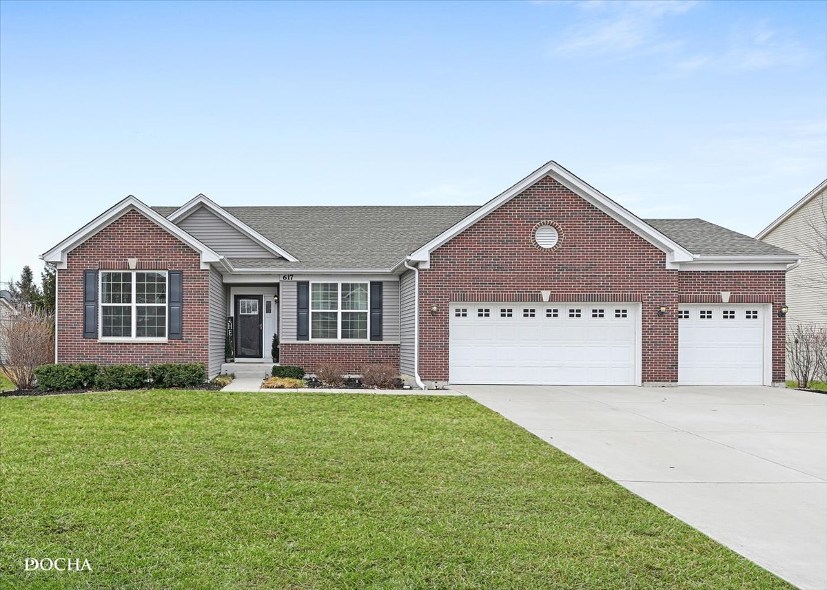 Welcome to 617 Northgate Lane, Shorewood - where refined design meets modern sophistication in this impeccably crafted 3-bedroom, 2-bath ranch residence. From the moment you enter, elevated 9-foot ceilings create an immediate sense of openness, while the breathtaking 14-foot vaulted ceiling in the family room delivers architectural drama and expansive natural light. Anchored by an elegant fireplace, this stunning space becomes the true heart of the home - warm, inviting, and designed for both intimate evenings and elevated entertaining. At the center of it all, the chef-inspired kitchen commands attention with a remarkable 9.5-foot island - a striking focal point ideal for gathering, hosting, and effortless everyday luxury. The open-concept layout seamlessly connects the kitchen, dining, and family room, creating a sophisticated yet comfortable flow. A dedicated executive office, enclosed by double French doors, offers privacy with style - perfect for remote work or a refined study retreat. The sun room provides a serene extension of the living space, bathed in natural light and ideal for morning coffee, quiet relaxation, evening sunsets or year-round enjoyment. Integrated Smart Home technology via Alexa Connected devices enhances the lifestyle experience, placing modern convenience at your command. The full insulated basement presents a blank canvas for your vision - whether you imagine a private fitness studio, Pool table, Air Hockey, home theater, wine lounge, and expanded entertaining space, the opportunity to customize awaits. 617 Northgate Lane is a seamless blend of architectural presence, warmth, innovation, and untapped potential - an exceptional offering in the desirable Shorewood community. Experience elevated ranch living.