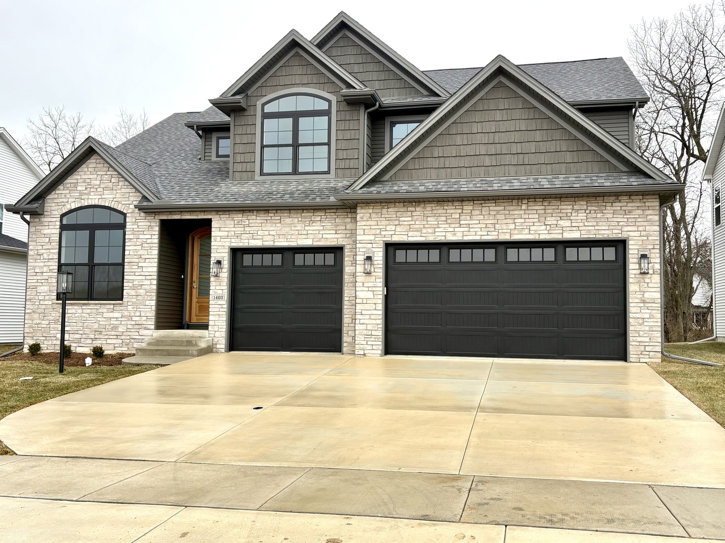 Discover spacious, flexible living in this new construction 5-bedroom, 2-story home in the desirable Thornewood Subdivision. The main floor features a versatile flex room with vaulted ceilings-ideal for an office, playroom, or creative space-along with an inviting living room showcasing a gas log fireplace that flows seamlessly into the dining area and well-appointed kitchen with an island and built-in microwave. A convenient mudroom off the 3-car garage and a half bath add everyday functionality. Upstairs, the primary suite impresses with tray ceilings, a luxurious ensuite offering double sinks, a walk-in tile shower, soaking tub, and a generous walk-in closet. Three additional bedrooms, a full bath with double sinks, and a convenient laundry room complete the second level. The finished basement expands your living options with a fifth bedroom featuring egress, a full bath, a large rec room, and ample storage. Outside, enjoy a spacious backyard perfect for relaxation or play.