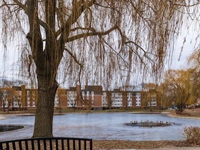 Beautifully updated 2-bedroom, 2-bathroom condo with a versatile den/family room, offering a spacious and inviting layout. A grand circular foyer welcomes you into this thoughtfully designed home. The eat-in kitchen features crisp white cabinetry, a pantry, and a convenient closet with newer washer and dryer. The formal dining room includes custom built-in cabinets and flows seamlessly into the expansive living room with a cozy gas fireplace-perfect for entertaining or relaxing. Enjoy an abundance of natural light through newer casement windows, along with the comfort of a newer furnace and air conditioning system. Closet organizers throughout add both function and style. This is the only pet-friendly building in the community! Ideally located near the lake, shopping, and parks, with access to an exceptional clubhouse featuring an indoor swimming pool and more. Disability accessible for added convenience.